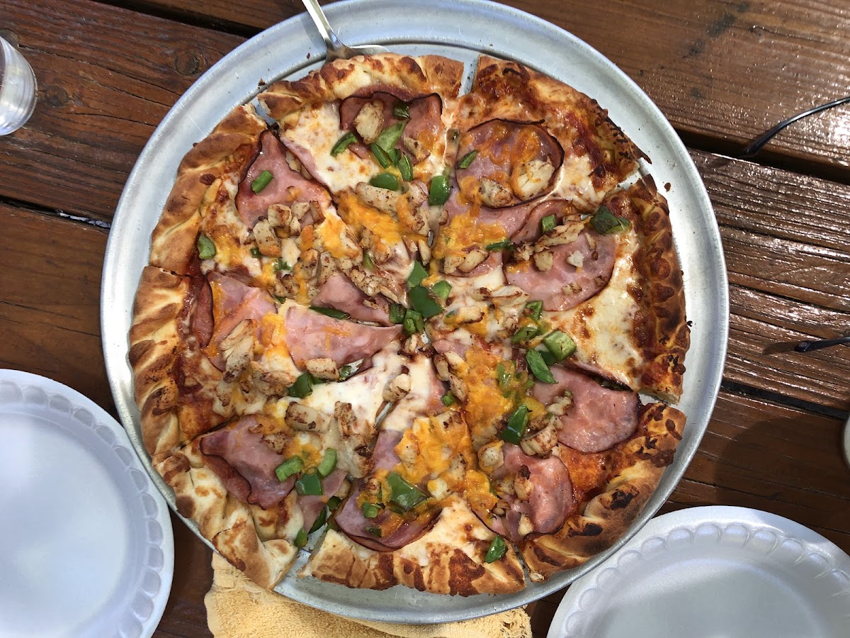 This is one of the few food options close to Lassen Volcanic National Park. We got there a bit before 6pm the Saturday of Labor Day weekend, and had to spend a couple of minutes even looking for a parking spot - ultimately had to park on a dirt patch along the 44 freeway with a dozen cars having already done so before us. My friend had a salad, and we shared a large sized combo pizza. Asked them to replace salami with broccoli, which they were happy to comply with. The pizza was good but definitely very greasy. There were enough leftovers to make breakfast the next morning before another long day of hiking. Service was understandably slow, but the waiter also seemed overwhelmed and confused. Total including tips and taxes came to around 55 bucks, which is pretty decent considering that it made 2 meals for 2 people.